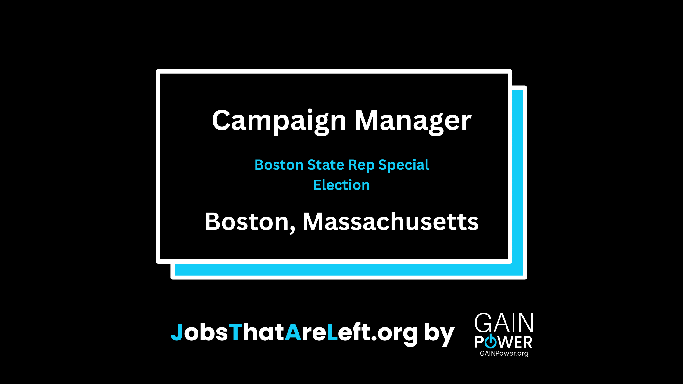 Position: Campaign Manager Description: A candidate for State Representative for the 9th Suffolk district is looking for a driven, scrappy individual to join the team for a 2023 special election in Boston.