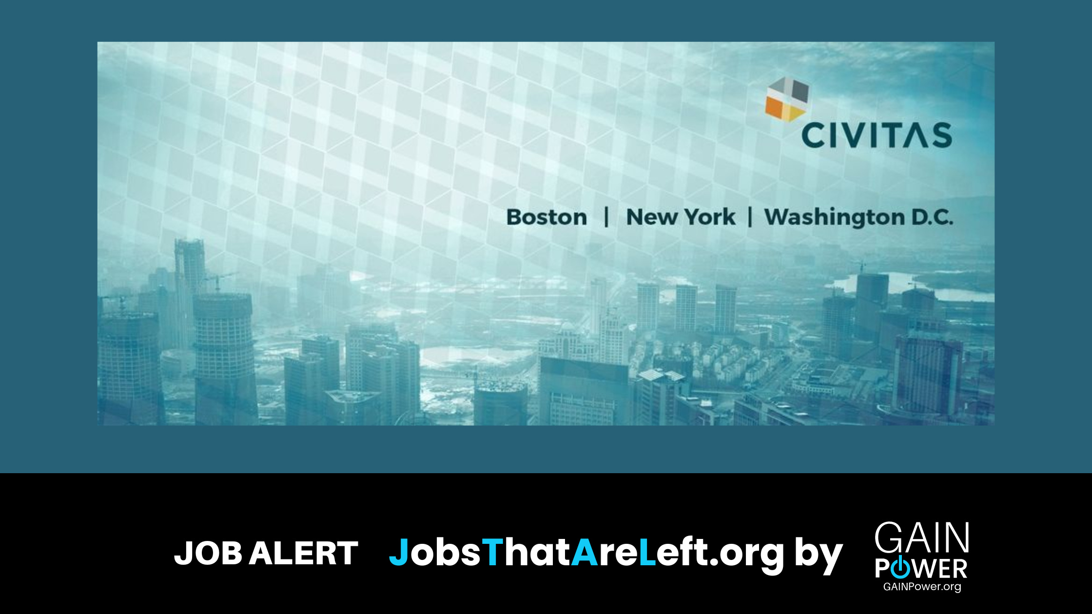 Jobs That Are Left is a progressive professional listserv managed by GAIN Power. We share jobs from our career center, careercenter.gainpower.org, events, news, and other partners activities. Go to GAINPower.org to build your profile, add your organization page, create and join groups, add events to our calendar, or post on the newsfeed as you would on other social platforms.