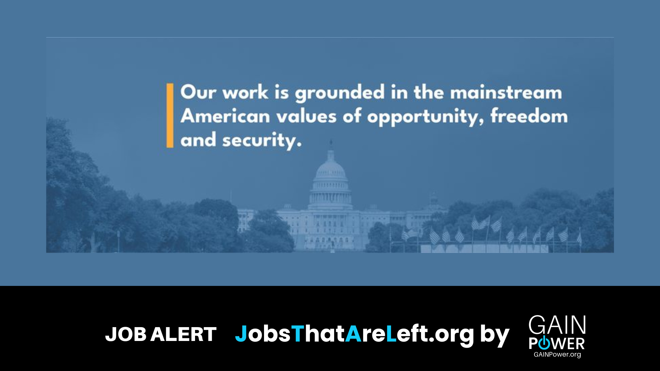 Jobs That Are Left is a progressive professional listserv managed by GAIN Power. We share jobs from our career center, careercenter.gainpower.org, events, news, and other partners activities. Go to GAINPower.org to build your profile, add your organization page, create and join groups, add events to our calendar, or post on the newsfeed as you would on other social platforms.