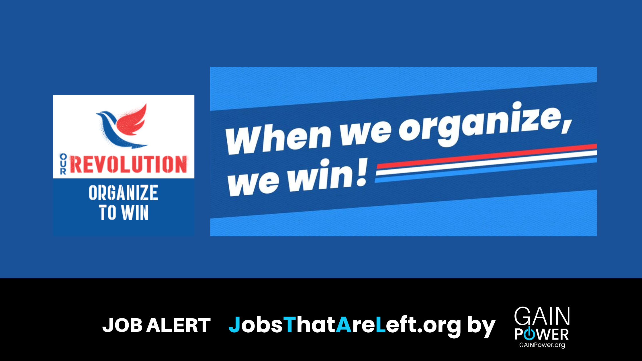 Jobs That Are Left is a progressive professional listserv managed by GAIN Power. We share jobs from our career center, careercenter.gainpower.org, events, news, and other partners activities. Go to GAINPower.org to build your profile, add your organization page, create and join groups, add events to our calendar, or post on the newsfeed as you would on other social platforms.